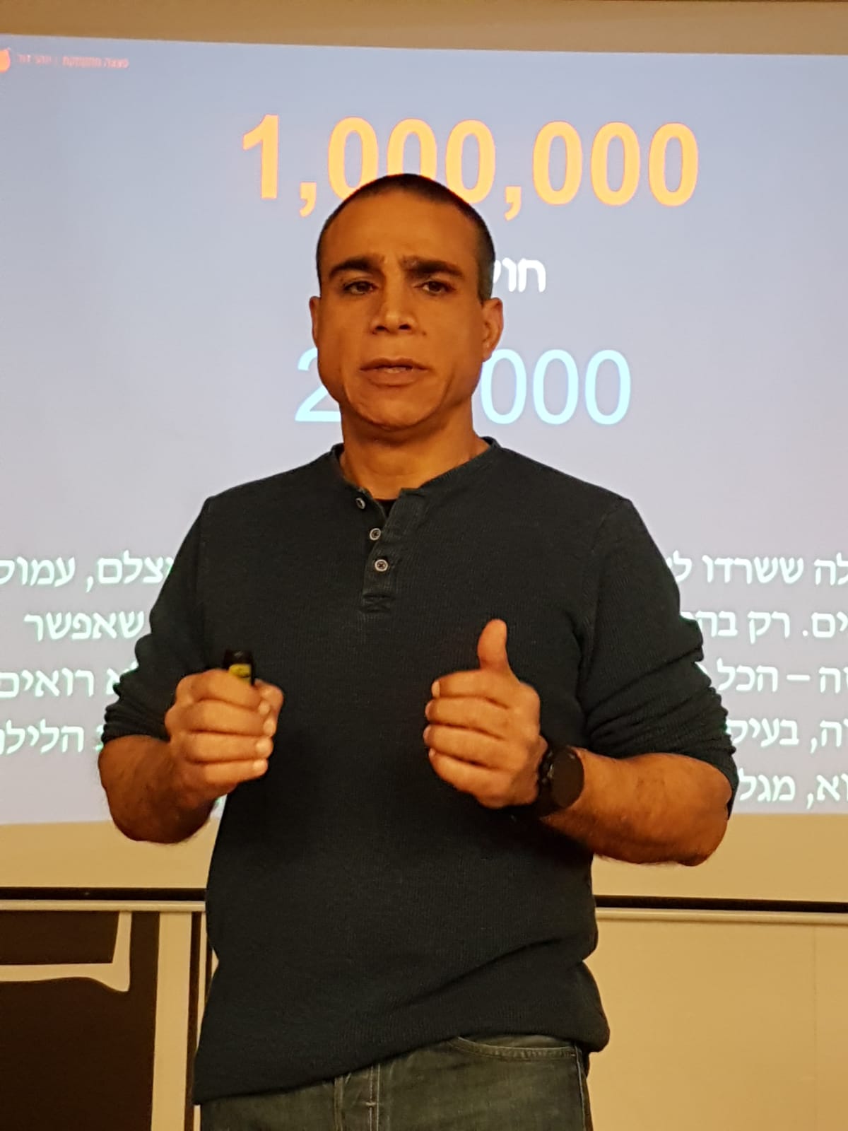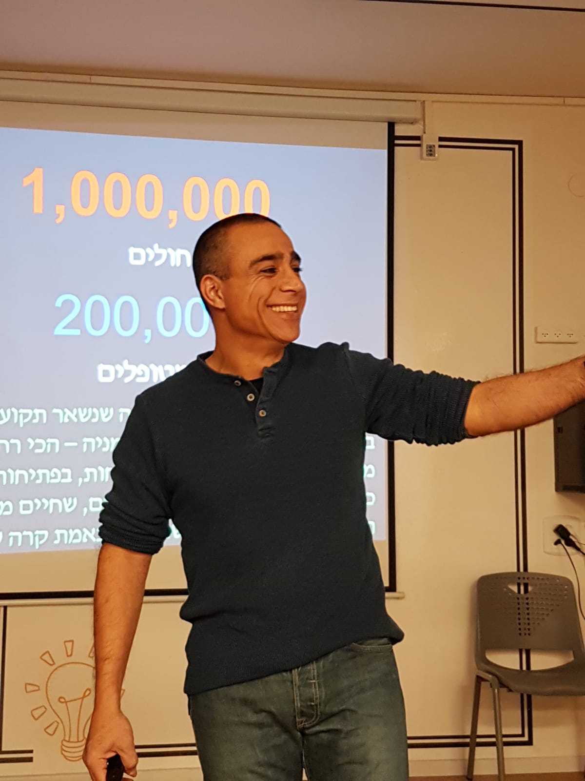 בהרצאה יספר כיצד לאחר שטיפל בפציעתו הפך לאחד המובילים בתחום הסיוע להלומי הקרב בישראל, וכיזם חברתי הקים מספר ארגונים ועמותות, ועל כך נבחר להיות הלום הקרב הראשון בישראל שקיבל את אות המופת השיקומי.